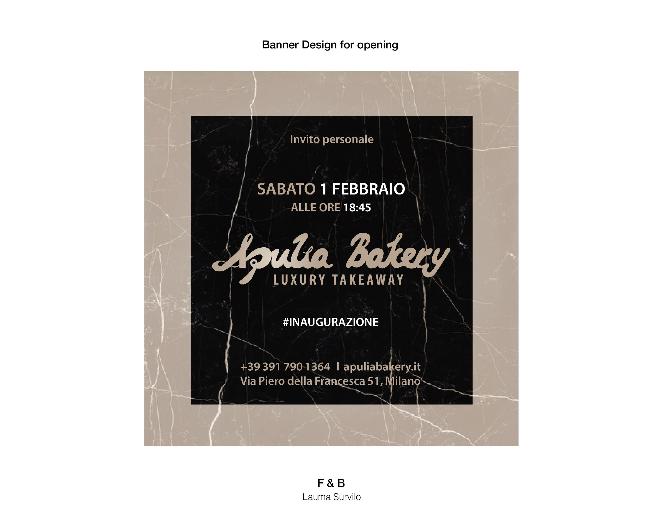 Tailor made handwritten Logo design, banner & Windows design for Apulia bakery.A new concept for takeaway, connecting traditional cuisine and luxury.Based in Milan
